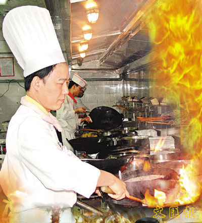 ■被譽為「亞洲廚皇」的香港廚師潘榮賜,在瑞豪國際酒店的廚房專注工作。新疆辦