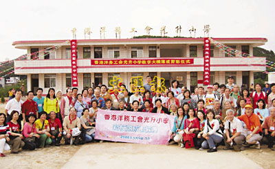 【本報訊】(記者 施立偉)為支援貧困山區教育事業發展,香港洋務工會的會員繼上個月在貴州省捐資興建「開陽縣特殊教育學校」後,日前又分別在廣東省封開縣捐資興建兩間希望學校,至今洋務工會已經捐建了6間希望學校。工會主席黃柏勝,副主席鄧家坤、張培生及梁昌全,監察委員會主席陳植桂、顧問梁金,趙碧晶的父母趙子遜和林淑吟,以及60多名會員、家屬出席開幕禮。