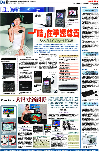 三星電子旗下首部咭片型纖薄影相手機 SAMSUNG Anycall P308,擁有獨特的設計,外形猶如一部計算機。P308更配備不鏽鋼及鎂的保護外殼,機身厚度僅為8.9毫米,非常纖巧。隨機更附送皮套(連附加電池),氣派十足,加添了尊貴的感覺,還集多媒體功能於一身。小小的P308,特別適合追求輕便及時尚感的你使用。