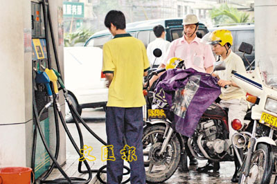 ■廣州加油站秩序未因加價消息而出現混亂。本報記者胡進 攝