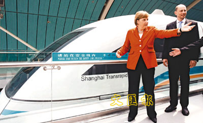 ■德國總理默克爾在中國的最後一個節目是乘坐磁浮離滬。她在此前的電視採訪中說,德國的磁浮技術不能白送。 法新社