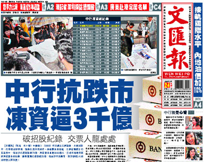 本港歷來最大型集資活動—中行招股,雖然昨日截飛前夕遇上亞太區股災,但無減散戶對中行的狂熱。