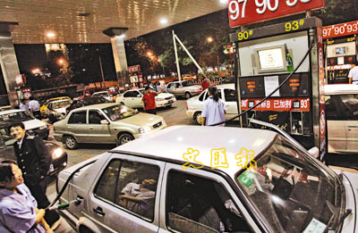 ■23日晚上,北京盛傳汽油漲價的消息,致使各大加油站車滿為患。 中新社
