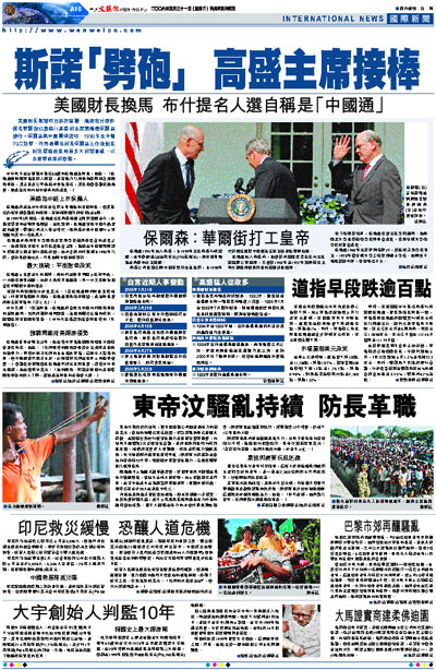 美國財長斯諾昨日終於請辭,總統布什隨即提名華爾街投資銀行高盛的主席兼總裁保爾森接任。保爾森與中國關係密切,1990年至今曾70次訪華,外界最關注的是保爾森上任後能在制定經濟政策時有多大的話事權,以及對華政策的取態。
