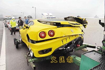 肇事的法拉利屬F360型號,車牌編號LE8X8,以觀塘一間針織廠名義登記。該廠有兩名股東,其中一人姓陳,家住深井海韻台;陳在東莞設廠房,面積達6千平方呎,聘用800名員工,專門製造歐洲名牌時裝。