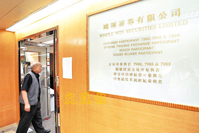 鴻運證券因流動資金不足,被證監會凍結資產及飭令暫停運作,其位於中環的辦事處連日來均有客戶上門查詢。