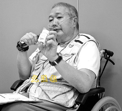 59歲的周先生患有罕見的肺動脈高血壓,經常氣促,必須24小時插喉吸氧。有藥廠年半前邀請他服用新的類風濕藥Tracleer作試驗,藥費每月2萬多元,試驗期間藥廠全數贊助,豈料贊助期將於月底屆滿,他與失業的妻子毫無收入,很可能被迫放棄治療。