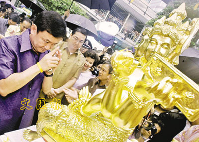 今年3月,在泰國首都曼谷市中心著名的四面佛像,被一位精神異常的男子砸碎,在泰國社會引起極大震動。時值泰國政局動盪,人們甚至將此事與國運的興衰聯繫起來。在四面佛遭砸毀之後,當地的占星家議論紛紛,認為這是不祥之兆。4月2日的泰國國會大選,經法院判決無效,截至目前為止,重新選舉的日期還無法確定,新政府無法產生,而政局的動盪已經影響到泰國的經濟成長。信徒們祈求,四面佛重新歸位之後,泰國的政治紛爭能早日結束。