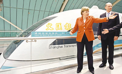 ■德國總理默克爾上月在中國訪問時表示,德國的磁浮技術不能白送。資料圖片