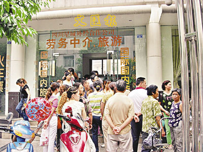 ■涉案的勞務中介公司擠滿打探消息的務工人員家屬。 本報記者李和平 攝