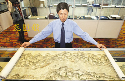 2日,迄今為止發現的最長的中國古代地圖《金沙江全圖》亮相北京嘉里中心飯店。該地圖將在3日舉行的「中國嘉德2006春季拍賣會」古籍善本專場中被拍賣。這幅地圖為清乾隆初年的官繪,全長74米。 中新社