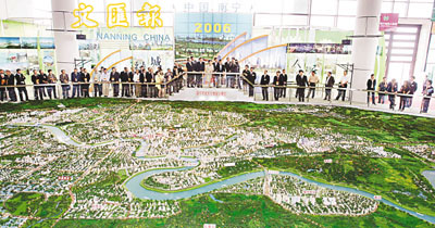 ■考察團了解南寧發展,觀看南寧規劃沙盤。 本報記者葉傲冬 攝