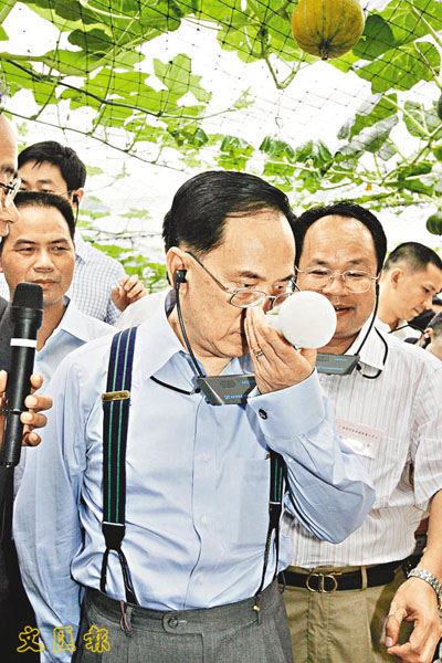 曾特首隨後參觀了南寧本地企業——南寧鳳凰紙業,以及廣西現代農業技術展示中心,參觀了目前內地同類園區中功能全、投資少、效果好、科技含量高、輻射力強並具地方特色的「八桂田園」。由於此中心的品種數量多而新奇,當勞也大感興趣,不時將各種作物拿到手上摸摸,放在鼻端上嗅嗅,更品嚐了當地著名的「水果甜椒」,事後更大讚:「好甜、 好爽、 好好味!」