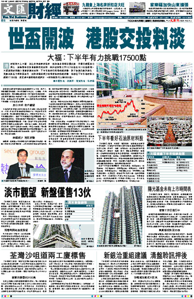 他續稱,從港股上月的調整已反映熱錢減少的憂慮,港股一來受美元的表現影響,二來亦受對沖基金在市場的活動,對沖基金帶來的熱錢,流入流出都可以好快,一旦對沖基金出現一致性流向時,可能帶來骨牌效應,如對沖基金在商品市場的參與相當積極,若商品市場出現過大的波動時,在一定程度使股市出現波動,所以熱錢的流入在下半年值得關注。