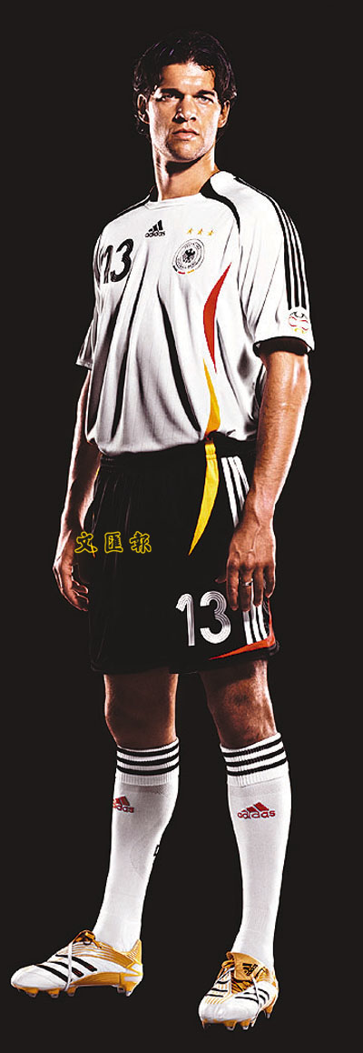 作為東道主的德國,坐擁三度世界盃冠軍的輝煌紀錄,今年有自己國人打氣,準備錦上添花。球衣方面,原用傳統的黑白配,球衣旁加少少紅和橙的弧形線條,氣勢銳不可擋!
