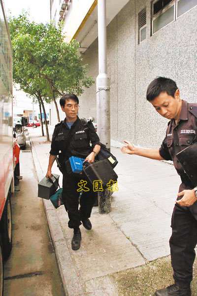 ■警方爆炸品處理組人員檢走載有懷疑山埃粉末的信件調查。