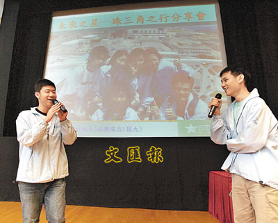 大學生是未來的社會棟樑,在內地及香港各方面交流合作日益頻繁的大環境下,要為貢獻社會及國家作好準備,最有效的方法莫過於親身考察,增加認識。由公民薪傳網絡、未來之星同學會及香港文匯報合辦的「未來之星——珠三角專業發展考察團」在4月完成行程後,前日舉行分享會,讓近百名參與的香港大專生回顧4天行程裡的得著,以及分享自己所見所感。