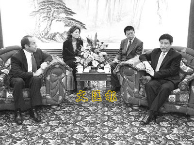 ■武漢市委書記苗圩(右)會見普洛斯全球總裁Jeffery。