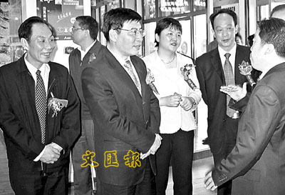 ■湖北省委常委、武漢市委書記苗圩(左二)在礄口區委書記李傳德(左一)、區長王紹志(右二)的陪同下,視察中國建材第一市提檔升級項目—大武漢家居廣場。
