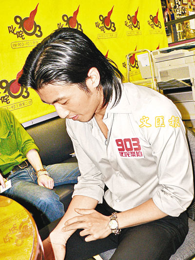 【本報訊】(記者 李思穎)謝霆鋒昨日到電台訪問時,見他右手腕貼上一塊大膠布,隱約仍見到一些血漬,因此產生「割脈」疑雲,他被問到如何受傷時顯得有口難言,只肯透露是「練習」時弄傷,詳情便不欲說出來。