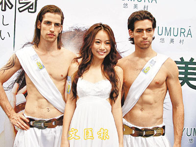 【本報訊】(記者 梁靜儀)鄧麗欣最近擔任一纖體飲品的代言人,修身成功的Stephy昨日穿上白色露背裝,出席於銅鑼灣舉行的記者會,由兩位裸露上身的猛男抬著轎出場,相當有氣勢。