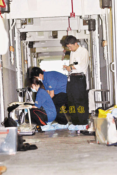 ■政府化驗師在現場搜證。本報記者蔣焯文 攝