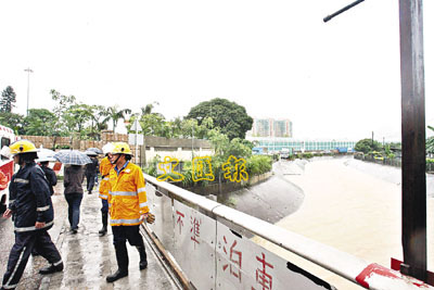 【本報訊】黑雨之下,3名男童不理好心村民警告,在屯門虎坑路跳下雨水湍急的引水道嬉水玩耍,一小時後,該名村民發現失去3童蹤影,恐已遭洪水沖走,於是報警。警方及消防處接報,即展開海陸搜索,其間消防蛙人沿引水道搜尋,並派出小艇在引水道出海處的青山灣避風塘一帶搜索,惜至傍晚仍無發現。