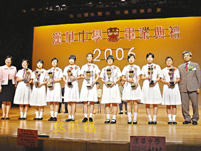 漢華中學今年大學預科結業生50人,中學畢業生109人,其中獲品學優異獎12人、品學良好獎10人、學科成績優異獎39人,以及課外活動成績優異獎42人。校監崔綺雲表示,小西灣的中小學一條龍新校舍蓋建工程已經完成,新校將於今年九月啟用。在新學年會率先開小一,中學部方面,由中四級以上至中七級同學九月會到新校舍上課,中二及中三級將繼續在青蓮台上課,然後逐年遷移到小西灣。