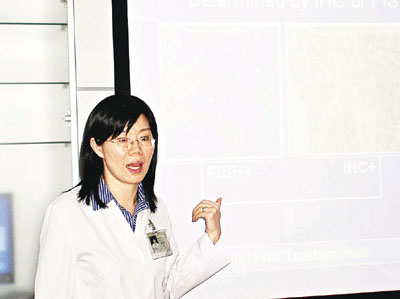 ■楊明明指出,新藥「曲妥珠單抗」可大大減低乳癌復發率,預計該藥最快明年於市面發售。本報記者李見安 攝