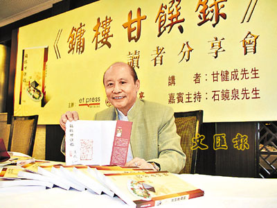【本報訊】(記者 施立偉)香港著名食府—中環鏞記酒樓掌舵人甘健成撰寫的新書《鏞樓甘饌錄》日前舉行讀者分享會,介紹香港飲食文化精髓,如物料的配搭,烹調的流程,烹飪技巧等。甘健成說,香港作為華洋集聚,中西美食兼收的國際都會,傳統的粵菜應該在保留傳統的基礎上推陳創新,繼續弘揚「食在香港」的美譽。甘健成稱,百多年來,由於港人的努力耕耘,使香港由一個小漁港發展成為國際金融中心,維港內華洋雜處,中外飲食文化兼收並蓄,而港菜系以粵菜為主,時代進展更令菜式自成體系,但他認為,隨著社會的發展及變化,傳統粵菜也應發展創新,才能吸引市民,保持「食在香港」美譽。