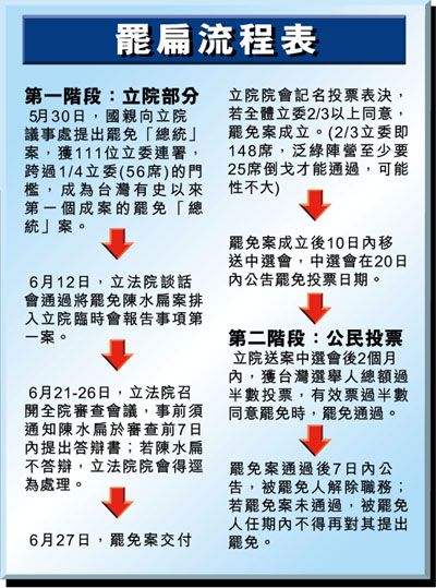 台灣中時電子報電話民調顯示,雖然陳水扁「權力下放」、降低曝光、使出夫人身體不好的苦肉計,民進黨各天王也號召鞏固領導核心,卻無法澆熄民眾對陳水扁以及執政當局的不滿。高達66.8%的受訪民眾認為陳水扁應該下台(包含自行下台以及被罷免),20.3%對罷免、「倒閣」或讓陳水扁自行下台都不贊成,僅有6.2%支持「倒閣」。民調結果顯示民眾認為眾多弊案問題出在陳水扁身上,對於蘇「內閣」並沒有太大的不滿。
