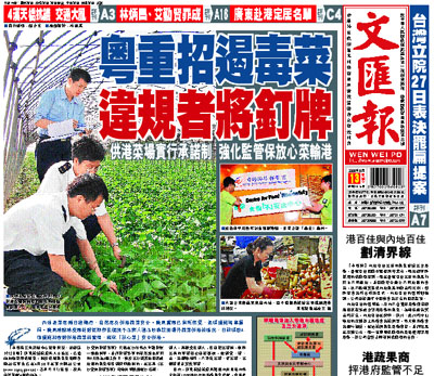 綠色和平昨日分別在香港及廣州港表示,更大規模的檢測顯示,華南地區廣泛使用非法農藥的情況仍然嚴重。該組織發言人引述香港蔬菜同業會會長楊碧山透露,內地質檢部門就註冊供港菜場有嚴格監管。但香港政府相關部門把關寬鬆,縱容不法商人以夾帶、走私、假證及買證等方法,將來源不明的問題蔬菜偷運入港,問題蔬菜很容易避過政府監管措施,輕易流入市面。
