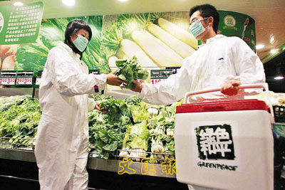 國際環保組織綠色和平昨日公布的調查結果顯示,廣州三大超市—百佳、家樂福及萬佳超過八成半的蔬菜含有殘留農藥,二成半的蔬菜殘留非法農藥。該組織宣稱,隨機調查結果如此驚人,說明內地蔬果農藥殘留形勢十分嚴峻。