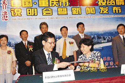 【本報訊】(記者 卓建安)重慶市涪陵區昨日由區長黃仕焱率領在港舉辦投資情況說明會暨新聞發布會,並吸引CEPA香港品牌發展聯合會與該區的新大興集團簽約,由該聯合會牽頭引進多個香港的產品進駐新大興旗下的依蝶購物廣場。