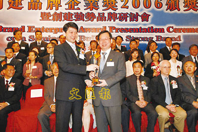 ■啟勝執行董事黃振華 (右)領取由香港生產力促進局頒發的「最佳創建品牌企業獎」。