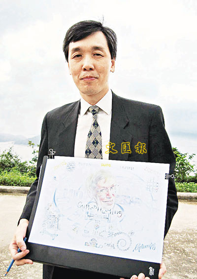 「在四月份確定了今次的繪畫後我已開始構思,了解霍金的一些理論,及如何將他一生的成就畫在畫紙上」,盧啟源表示,足足用了一星期的時間繪畫背景,再來昨日的記者會捕捉霍金的神情。