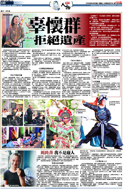 「我也很喜歡聽崑曲,搞崑曲的朋友會說:『你看我們都成了文化遺產了。』我說:『對,Good, go ahead.』可是,我一點都不希望京劇成為聯合國的甚麼文化遺產。」辜懷群說。