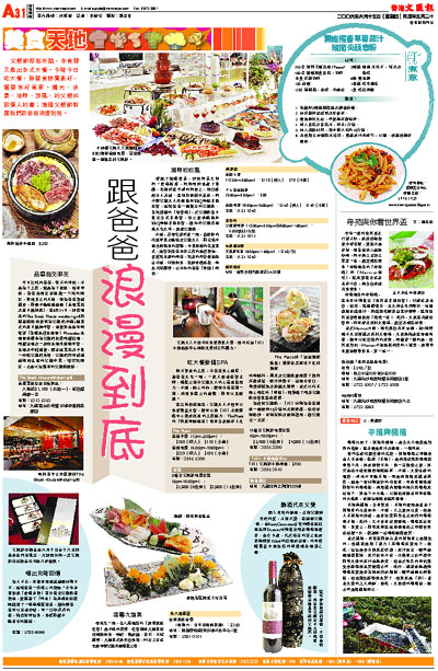 父親節即將來臨,各食肆又推出各式大餐。今時今日吃大餐,除要食物質素好,還要有好氣氛。燭光、夜景、池畔、涼風,約父親如跟情人約會;這個父親節就讓我們跟爸爸浪漫到底。