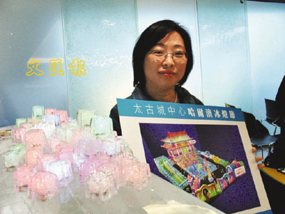 ■太古地產管理高級經理郝唐惠莉展示「冰燈節」圖片。本報記者 章佳強 攝