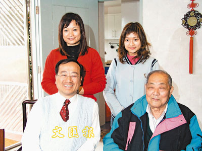 ■陳鑑林(前左)坦言外父(前右)很疼錫他們,而他也很疼錫外父。(後左為陳鑑林太太,後右為其女兒)。 資料圖片