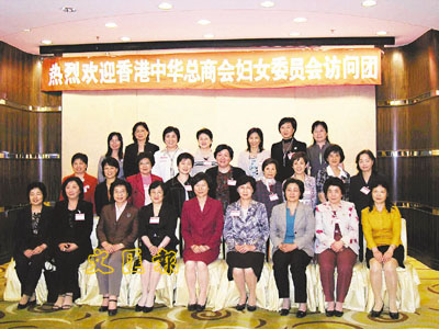 【本報訊】香港中華總商會婦女委員會費斐主席及鄧楊詠曼副主席率領的訪問團,一行24人日前赴北京訪問,並邀得中聯辦協調部孫阿清副部長擔任榮譽顧問。在京期間,中央統戰部樓志豪副部長、商務部馬秀紅副部長、國務院港澳辦周波副主任,全國婦聯陳秀榕副主席等多位部委領導會見了訪問團,並與團員們座談,就國家商貿及婦女工作等事宜作交流。