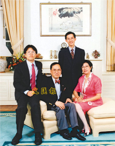 ■曾蔭權夫婦與兩名兒子慶衍和慶淳合照。 資料圖片