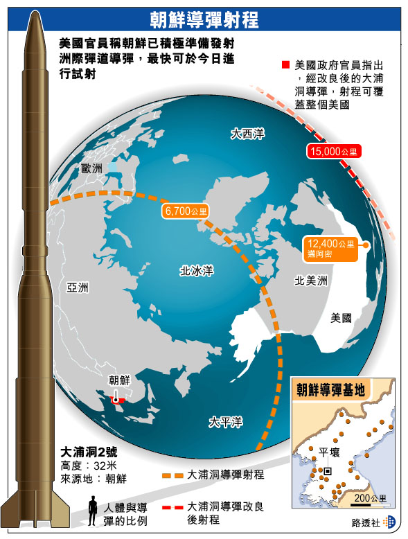 朝鮮導彈射程 (圖)