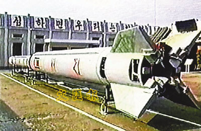 ■朝鮮曾經試射圖中的「大浦洞1號」長程導彈,穿越日本上空,直射至太平洋海中。資料圖片
