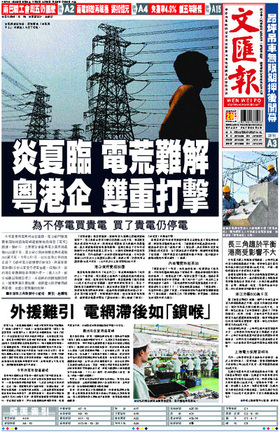 今年夏季用電高峰迫在眉睫,電力部門預測廣東屆時將因為電網建設滯後而備受「電荒」困擾。預計二、三季度全省最高電力需求將達到4520萬千瓦,電力缺口料突破歷史高峰達到350萬千瓦。今年3月1日,90%在珠三角的港企簽了《調峰電力認購暫行辦法》,同意每度電加價4分半以享受不停電待遇。但到4月,簽約港企普遍開始每周開六停一;進入5月,部分地區出現開五停二,未簽條約的開始開四停三。隨著高溫天氣持續,港商擔心政府會再調高電價,也擔心更頻繁的拉閘。