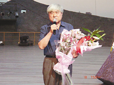 ■「神六」飛船系統總顧問戚發軔在首演儀式上致辭。本報武漢傳真