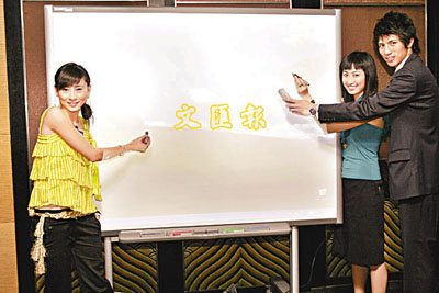 模特兒直接在屏幕的投射圖像上直接「書寫評論」或「繪畫」,就像一塊白色的書寫板。
