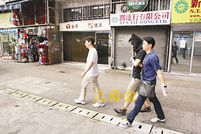 ■涉嫌專門非禮女學生的「撞胸色魔」當日被捕後,被押返寓所。 資料圖片