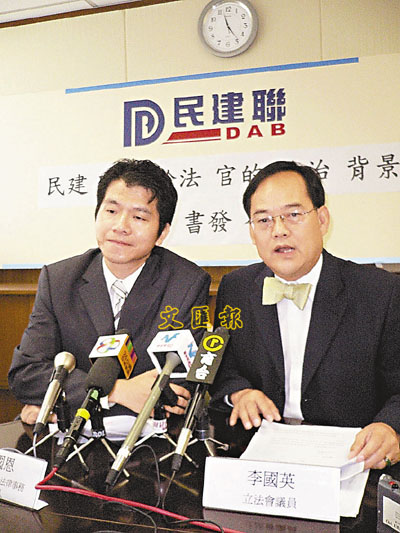 ■李國英(右)說,有政黨背景的法官無論全職或暫委均應受司法規定約束。 本報實習記者陳芷琪 攝