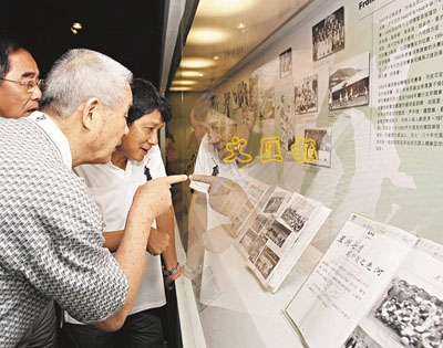 ■劉添在足球展覽上回憶過去。 本報記者劉國權 攝